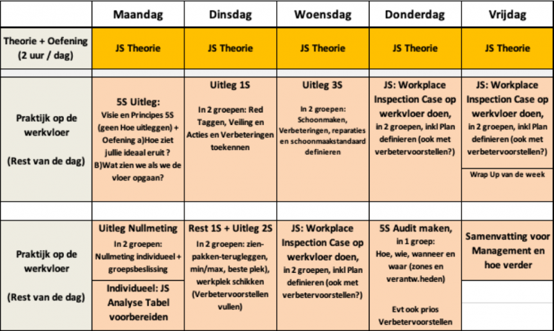 De JS-training duurt meestal 5 dagen, waarbij 1 groep van 10 deelnemers wordt getraind.